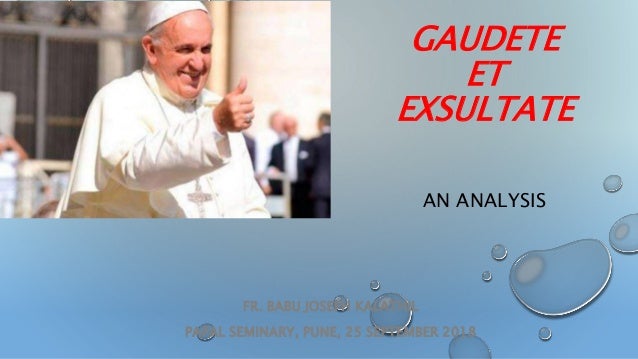 Gaudete et Exsultate Rejoice and Be Glad The recent apostolic exhortation of Pope Francis Gaudete et Exsultate Rejoice and Be Glad describes a spirituality of solidarity a holiness that cannot be lived apart from the call to recognize Christ in the poor and the suffering 96 a holiness that is lived out only in human community not. a d e t e GOW-day-tay Ecclesiastical Latin. Babu joseph kalathil papal seminary pune 25 september 2018 2.