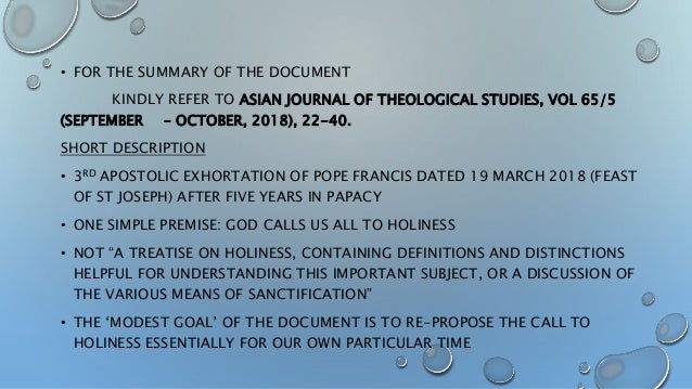 Antipope Francis Apostolic Exhortation Gaudete et Exsultate on the Call to Holiness in Todays World March 19 2018. This is the heart of the exhortation Gaudete et exsultate the fourth major pontifical document to appear since Francis became pope not counting the encyclical Lumen fidei of June 2013 largely written by Benedict XVI before his resignation. Gaudete et exsultate an analysis fr.